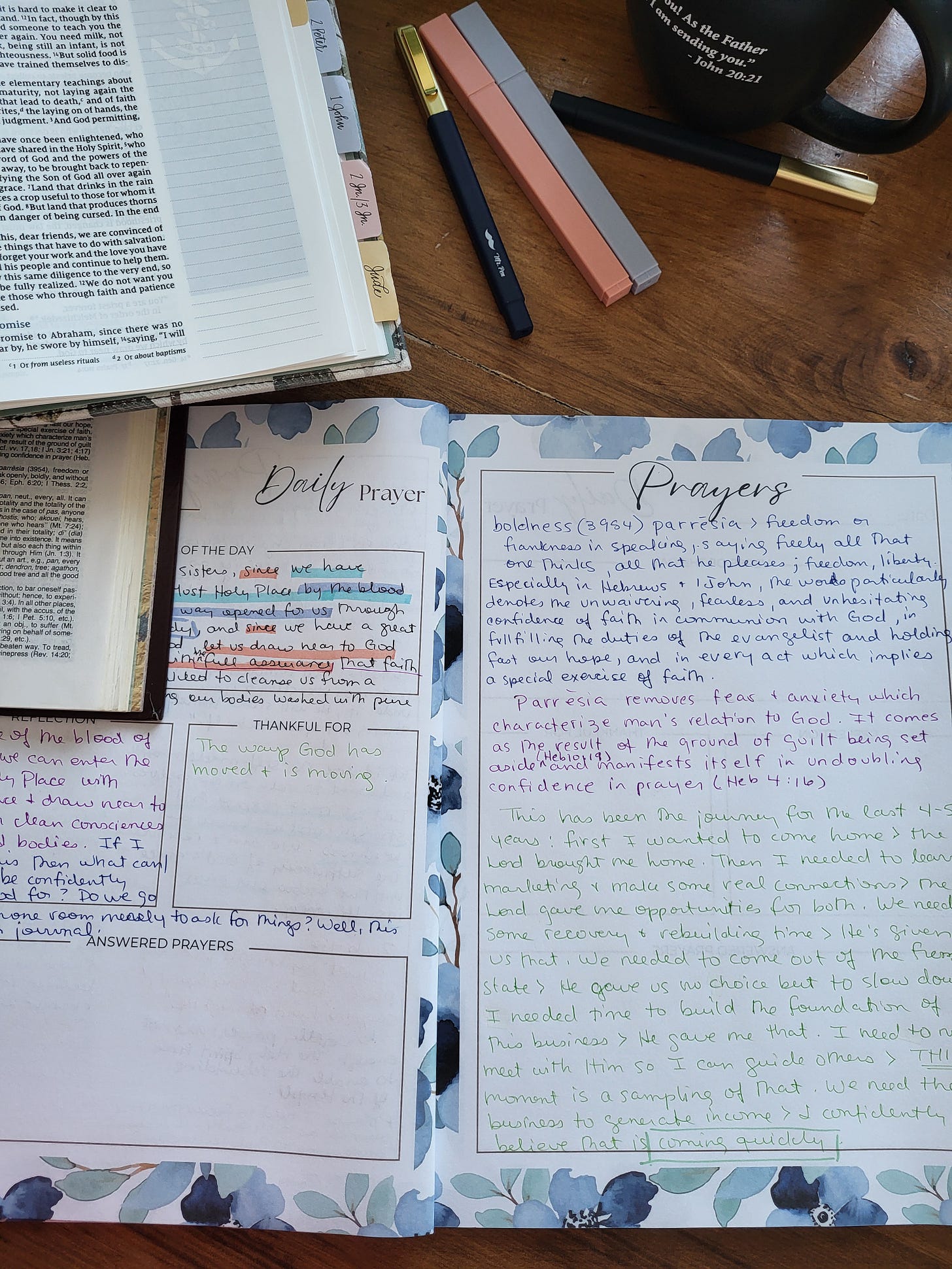 I fill in the area for what I’m thankful for, listing the small and big mercies I’ve seen. Then, I write in the answered prayer section. This is crucial because our memories are short. Writing down how God has moved in the past builds our faith for what we are facing today.