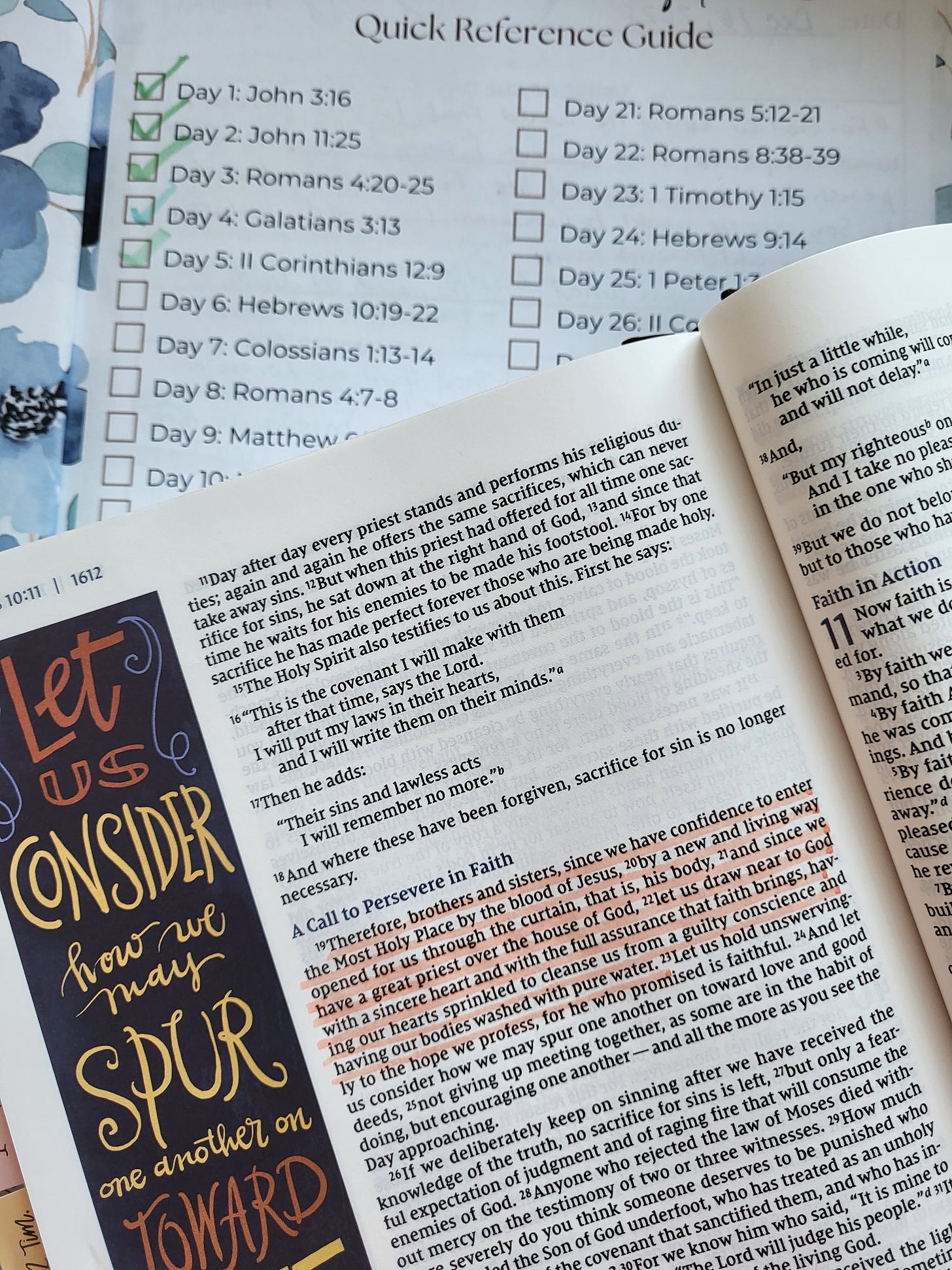 I highlight it in my Bible, then write it out by hand in the journal’s designated space. The act of writing forces us to slow down. It allows us to chew on every word, noticing phrases we might otherwise skim over.